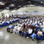 Mayerling Colmenares, subdirectora de la Universidad Simón Rodríguez, Yelitze Pétreo coordinadora estadal del programa de enfermería de la UCS, Yasmeli Urbina coordinadora de Universidad Nacional Abierta (UNA), representantes de la cofradía Dr. José Gregorio Hernández, decanos, directores, representantes de la Federación de Centros Universitarios (FCU) y estudiantes del Área de Ciencias de la Salud.