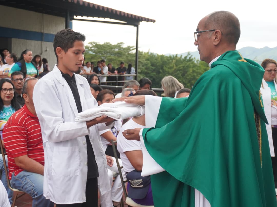 Al llegar al edificio de medicina de la Unerg, los participantes fueron recibidos con entusiasmo, donde se llevó a cabo una emotiva celebración litúrgica en presencia de las reliquias de 1er grado de San José Gregorio Hernández y Santa Carmen Rendiles, esta misa en honor a los santos venezolanos, permitió a los asistentes rendir tributo a sus vidas y legado, recordando la importancia de su trabajo en pro del bienestar de la sociedad.