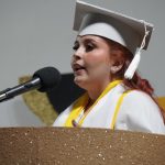 Seguidamente la médica cirujana Daniela Acosta, con toga blanca, primer índice académico de 9.53 y graduada Suma Cum Laude, dirigió un inspirador discurso aportando un nuevo significado a ser médicos, expresando que, «esa bata blanca no es solo símbolo de sabiduría, sino también de haber entendido que el hecho de sanar, no solo es intervenir, sino escuchar comprender y a veces simplemente estar», del mismo modo dentro del agradecimiento compartió el triunfo con familiares, amigos y docentes, que formaron parte fundamental en el trayecto de formación.